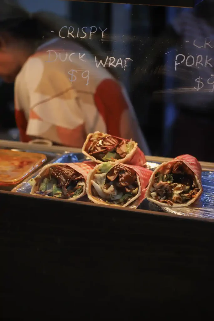 Besonders die exotischen Früchte aus den Atherton Tablelands begeistern uns – Custard Apples und Rambutans gibt es probeweise gratis. Lilly greift begeistert zu, während wir Käse und hausgemachte Chutneys für die nächsten Tage einkaufen. Zusätzlich gibt es asiatische Streetfood-Stände mit Thai-Nudeln, frischen Säften und unserem Highlight: cremiges Mango Sticky Rice, bei dem wir natürlich nicht widerstehen können.