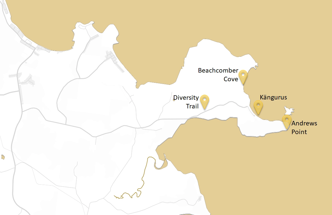 - Beachcomber Cove Track: Etwas anspruchsvoller (1 Stunde), führt zu versteckten Wasserfällen und vulkanischen Felsformationen. Wir klettern über Felsen, entdecken Muschelreste aus der Eiszeit – Naturgeschichte live!